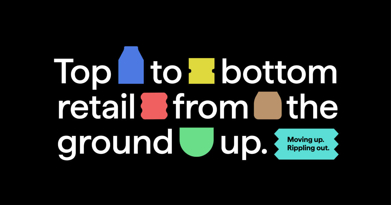 To bring the brand promise of flexibility to life, we developed a dynamic logo system inspired by the retail shelf. The visual identity mimics packaging forms, with stackable letters that reconfigure in a variety of ways. Extending this concept, we created a system of bright and bold geometric container shapes of all different sizes that are equally stackable and dynamic. This resulted in a flexible, energetic, and bold graphic language directly inspired by the retail environment.